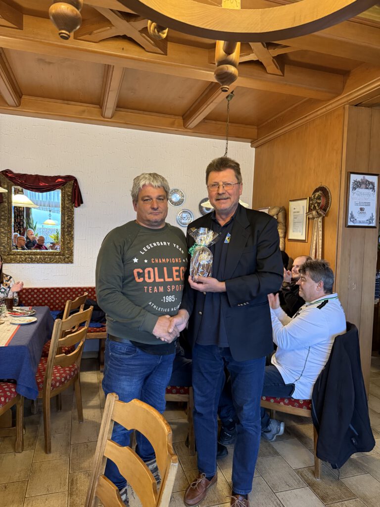 Von links. Michi Lösch, Beauftragter für Ehrungen, Guntram Bucher, Präsident Gerald Schäffer. Guntram Bucher wurde für 40- Jahre Vereinszugehörigkeit geehrt.